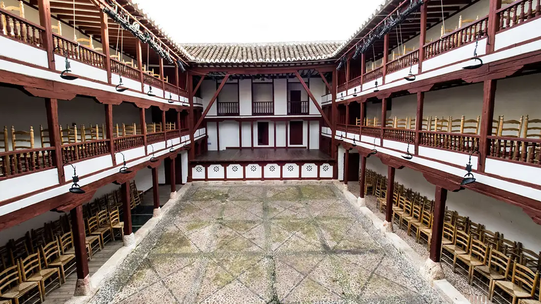 La ubicación del Parador es inmejorable para explorar uno de los pueblos más bellos y mejor conservados de España, declarado Conjunto Histórico-Artístico. A escasos metros se encuentra la joya de la villa: la Plaza Mayor de Almagro, única en el mundo por sus características galerías acristaladas de color verde. Pero el tesoro cultural más preciado está incluso más cerca: el Corral de Comedias del siglo XVII, el único de su época que se conserva intacto y en activo en todo el mundo. El Parador facilita a sus huéspedes la experiencia única de asistir a representaciones teatrales en este espacio histórico, tal como se hacía en el siglo XVII.