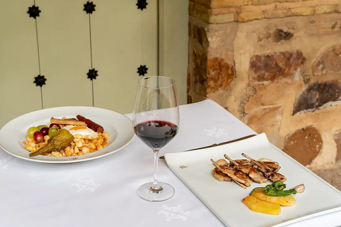 La experiencia en el Parador de Almagro se completa con una inmersión en la auténtica gastronomía manchega. El restaurante del hotel, situado en un entorno lleno de historia, sirve platos tradicionales reinterpretados con esmero y productos de la más alta calidad. Entre sus especialidades destacan las famosas Berenjenas de Almagro (el único vegetal con Denominación de Origen Protegida en España), el pisto manchego, las migas pastoras, la caldereta de cordero y los quesos manchegos. Cada comida se convierte en un viaje sensorial que conecta a los huéspedes con las tradiciones culinarias de La Mancha, preparadas con técnicas actuales pero respetando los sabores ancestrales.
