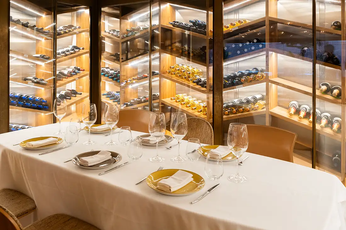 El postre mantiene la línea aromática del menú con piña, pino y piñón, en forma de mousse de piña acompañada de chutney y piñones tostados. Tras el postre, llegan los petit fours y el momento del brindis, acompañado de champagne, las tradicionales 12 uvas de la suerte y cotillón, permitiendo vivir la cuenta atrás sin abandonar la mesa.